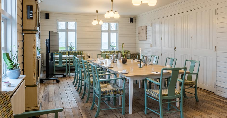 Hos os finder I ikke uinspirerende mødelokaler i neutrale farver, lange gange og store, rungende sale. På Rødvig Kro & Badehotel er vores lokaler indrettet i hjemlig, unik stil med lyse, smukke farver og en rolig atmosfære.